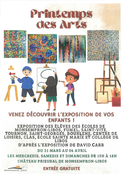 Exposition des élèves des écoles de Monsempron-Libos, Fumel, Saint-Vite, Tournon d'Agenais, Saint-Georges, Bourlens, centre de loisirs, CLAS, Ecole Sainte-Marie et collège de Libos.