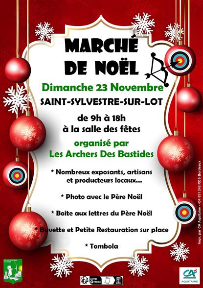 Marché de Noël avec de nombreux exposants, des artisans et des producteurs locaux, photo de noël avec le Père Noël, boite aux lettre du Père Noël... Buvette et petite restauration sur place, tombola.